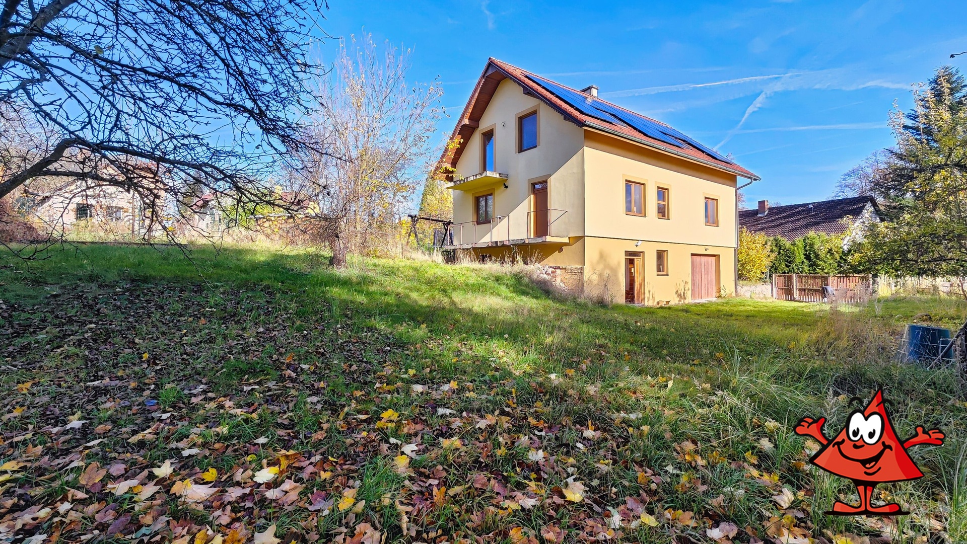 Ke kultivaci zahrady je profesionálně zpracován projekt, do fáze úplného dokončení není dotažen samostatný vstup ze zahrady do druhého (obytného) nadzemního podlaží a balkony. Díky nadstandardnímu zázemí technického podlaží, které má svůj samostatný vstup, je možné dům používat současně s bydlením i k podnikání.